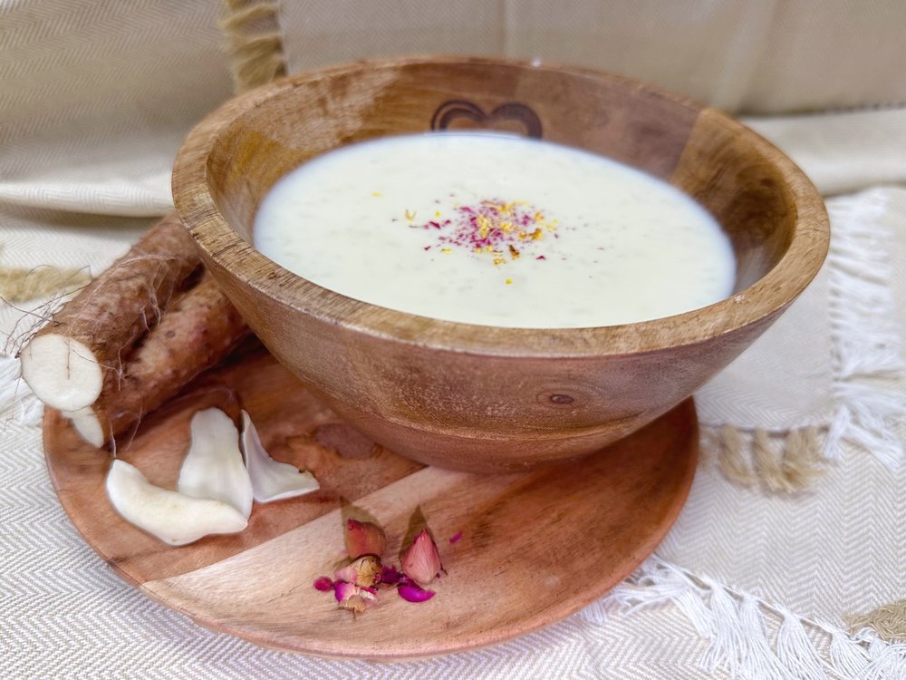 Ingredients: lily, rose, Chinese yam, sticky rice, jasmine rice, and soy milk.